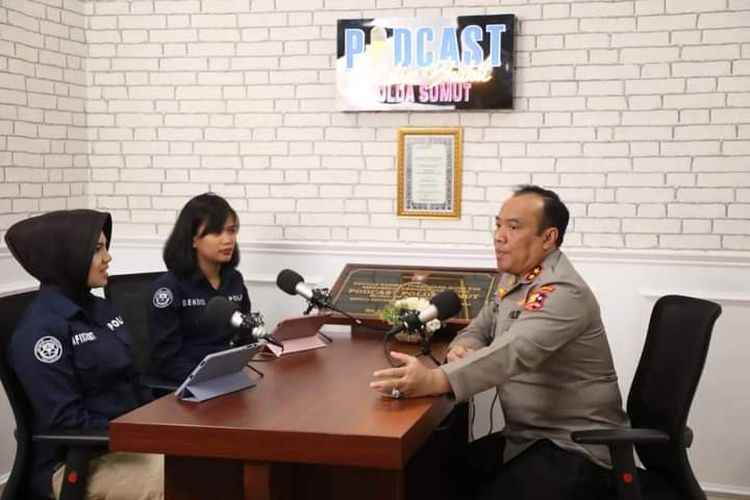 Mengambil tema “Kesiapan Humas Polri Menjelang Pemilu 2024”, podcast Satya Bhakti Polda Sumut dipandu Polwan cantik Briptu Afika Nasution dan Briptu Gendis Purba.
