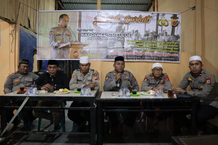 Kapolres Simeulue AKBP Jatmiko,S.H.,M.H melalui Kabagops Polres Simeulue yang hadir pada kegiatan program tersebut menyampaikan maksud dan tujuan kegiatan program Jumat Curhat. Program tersebut untuk menampung curhatan masyarakat yang nantinya akan dicarikan upayakan solusinya.