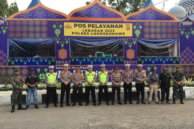 LHOKSEUMAWE – Tim asistensi Ditlantas Polda Aceh mengunjungi Pos Pelayanan Operasi Ketupat Seulawah 2023 Banda Sakti, Kota Lhokseumawe, Kamis (27/4/2023).