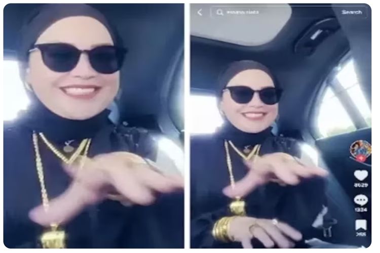 Sekilas tak ada yang aneh dengan video Umi Kalsum. Namun, nampak ia mengenakan banyak perhiasan emas di tubuhnya.