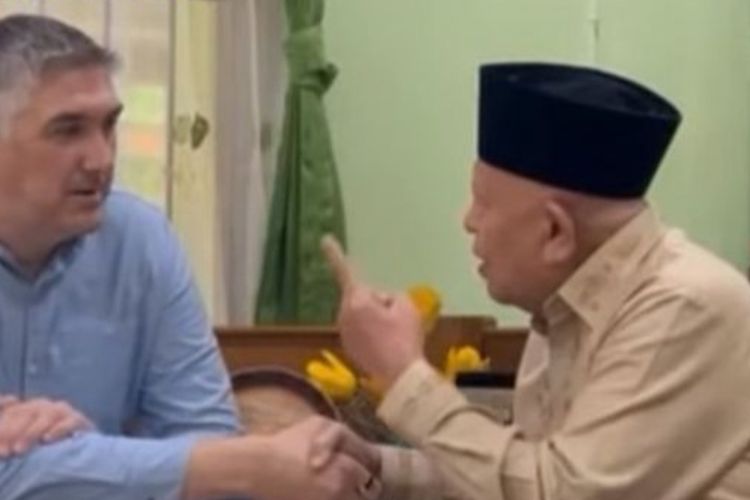 Dalam video terlihat KH Syukron Ma’mun membimbing Nathaniel Webb mengucap dua kalimat syahadat yang disaksikan Wasekjen PBNU.