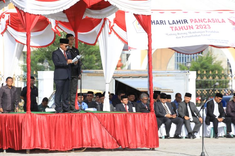 Pada kesempatan itu, pembina upacara Sekda Dr A Murtala, MSi, membaca amanat Presiden RI Joko Widodo, antara lain menyatakan bahwa Pancasila dan nilai-nilai yang dikandungnya merupakan Falsafah Dasar, Pandangan Hidup Bangsa, Dasar Negara, Ideologi, Kekuatan Pemersatu Bangsa, dan Sumber Segala Sumber Hukum Negara.