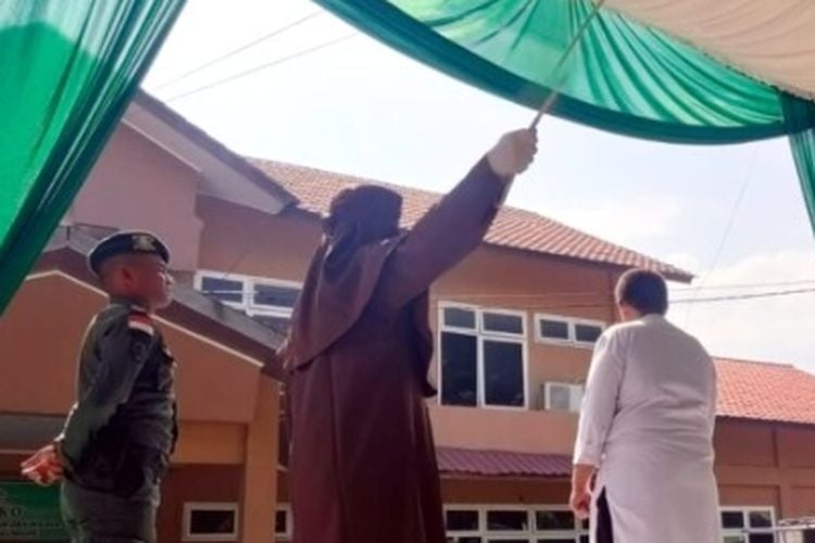 Pelaksanaan uqubat cambuk terhadap kedua terpidana yakni Maulana Ichsan dan Azhari Abbas yang merupakan warga setempat itu