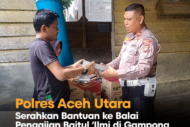 PIKIRANACEH.COM – Polres Aceh Utara menyerahkan bantuan ke Balai Pengajian Darul ‘Ilmi di Gampong Alue Leuhob, Kecamatan Cot Girek, Aceh Utara, Selasa 04 Juli 2023.