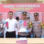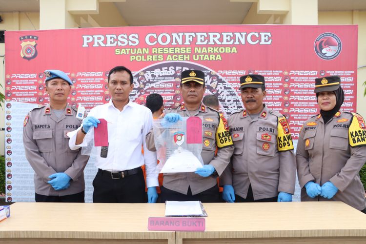 “Keduanya ditangkap saat akan melakukan transaksi di kawasan pantai Gampong Meunasah Baro Kecamatan Muara Batu, Aceh Utara pada 8 Oktober 2023 lalu,” ungkap Kabag Ops Polres Aceh Utara Kompol Firdaus Jufrida, S.T., M.S.i didampingi Kasat Res Narkoba AKP Novrizaldi dalam Konferensi Pers di Polres Aceh Utara, Senin 23 Oktober 2023.